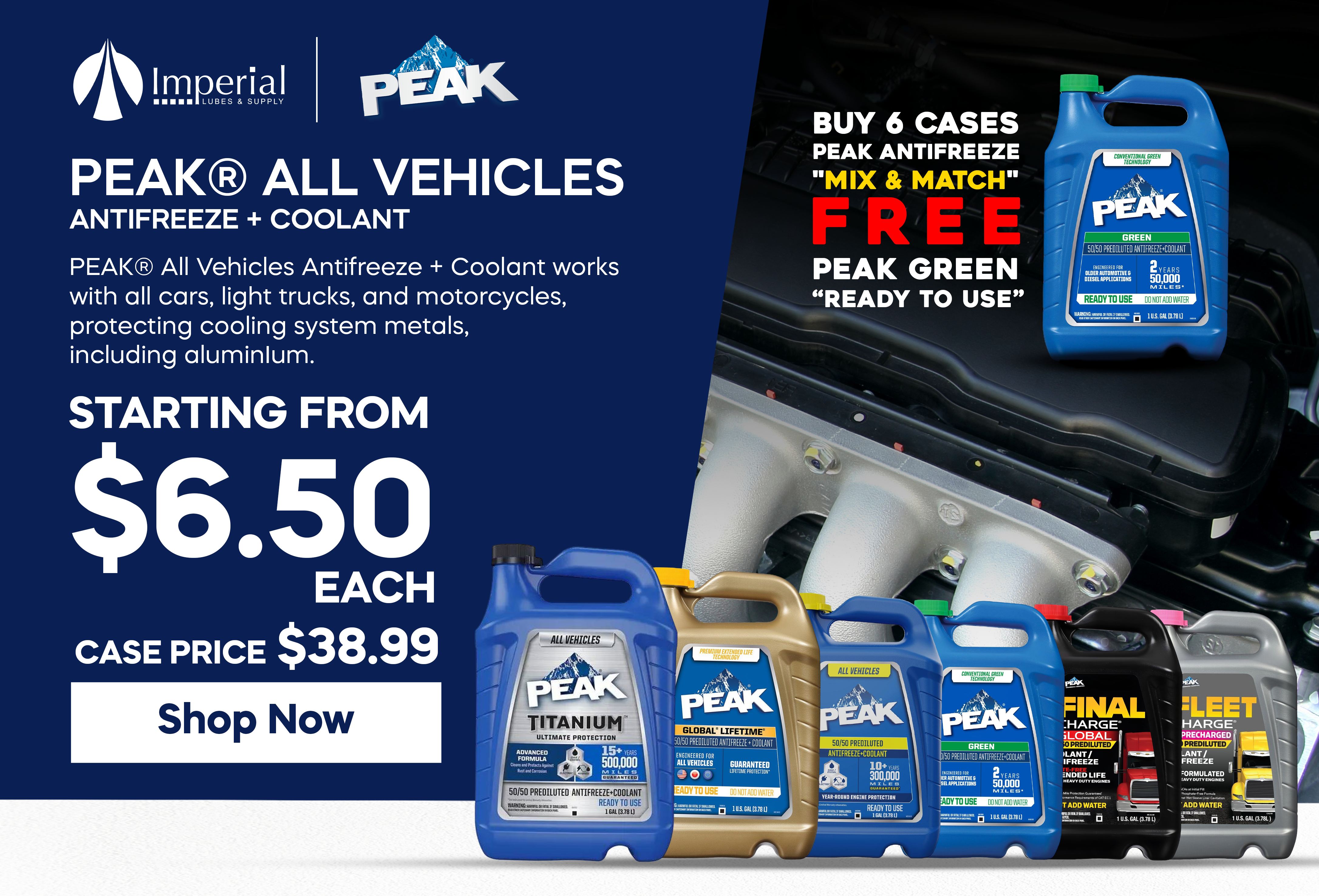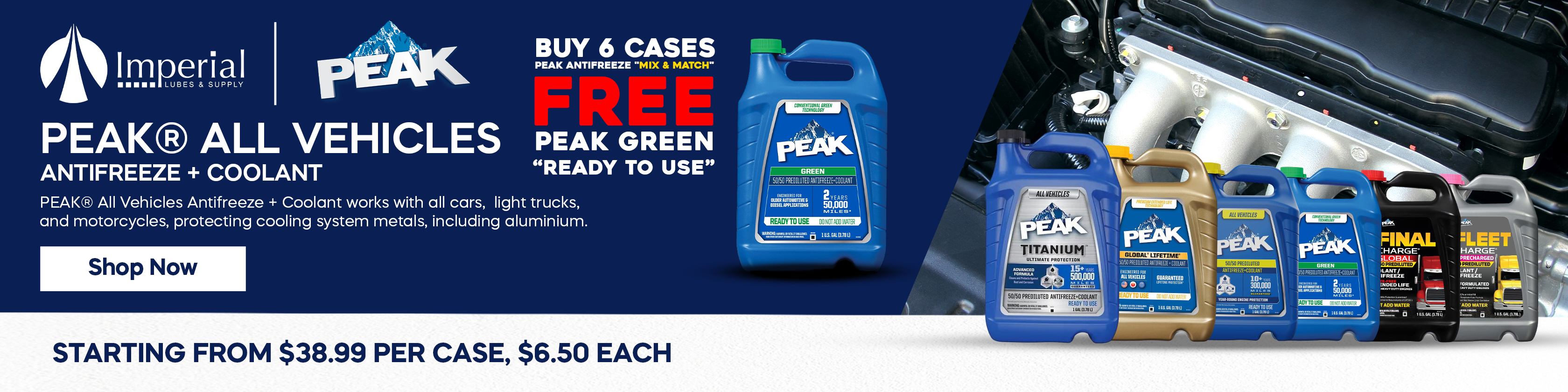 PEAK - Conventional Green Ready Use 5050 Antifreeze - 6/1Gal